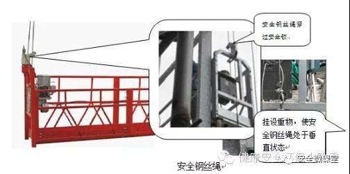 3、吊籃內(nèi)作業(yè)人員的安全帶應(yīng)時刻保證掛設(shè)在獨立的專用安全繩鎖扣上。