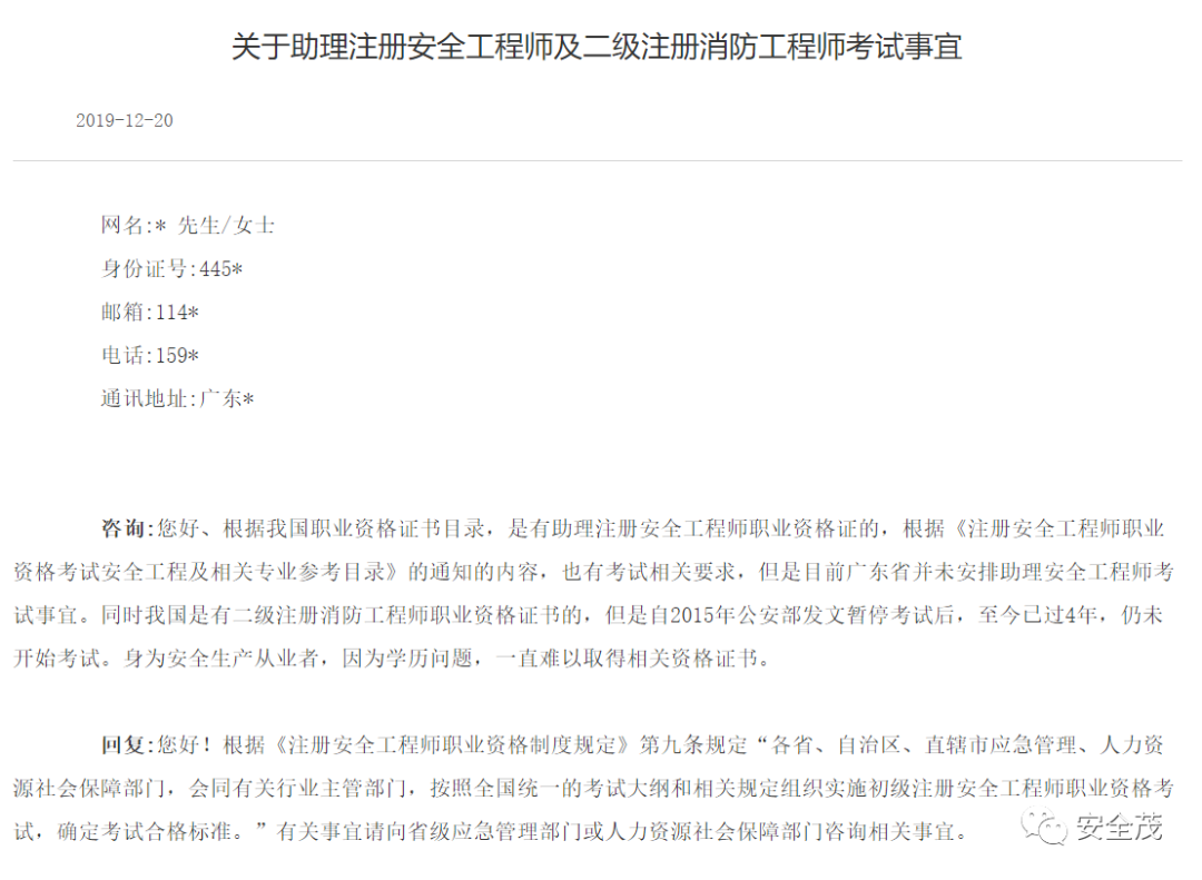 咨詢:您好、根據(jù)我國職業(yè)資格證書目錄,是有助理注冊安全工程師職業(yè)資格證的,根據(jù)《注冊安全工程師職業(yè)資格考試安全工程及相關(guān)專業(yè)參考目錄》的通知的內(nèi)容,也有考試相關(guān)要求,但是目前廣東省并未安排助理安全工程師考試事宜。同時我國是有二級注冊消防工程師職業(yè)資格證書的,但是自2015年公安部發(fā)文暫??荚嚭?,至今已過4年,仍未開始考試。身為安全生產(chǎn)從業(yè)者,因為學(xué)歷問題,一直難以取得相關(guān)資格證書。