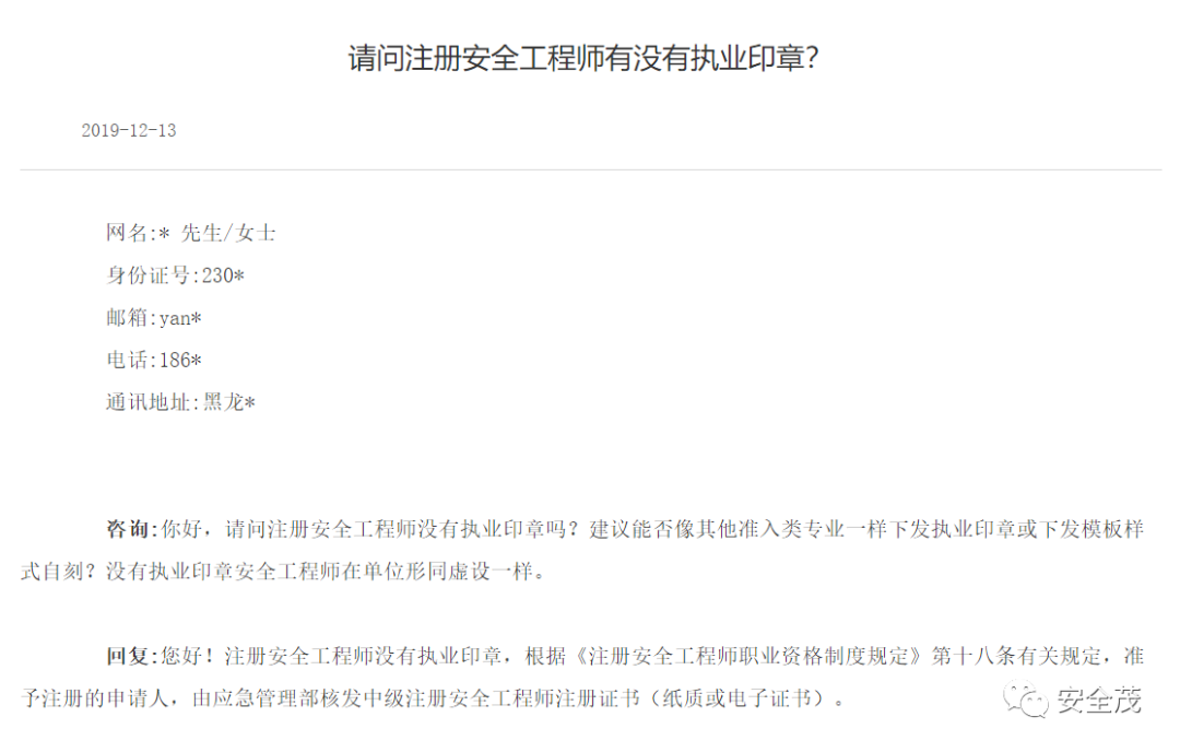 咨詢:你好,請問注冊安全工程師沒有執(zhí)業(yè)印章嗎?建議能否像其他準(zhǔn)入類專業(yè)一樣下發(fā)執(zhí)業(yè)印章或下發(fā)模板樣式自刻?沒有執(zhí)業(yè)印章安全工程師在單位形同虛設(shè)一樣。