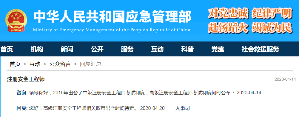 咨詢:領(lǐng)導(dǎo)你好,2019年出臺了中級注冊安全工程師考試制度,高級注冊安全工程師考試制度何時公布?