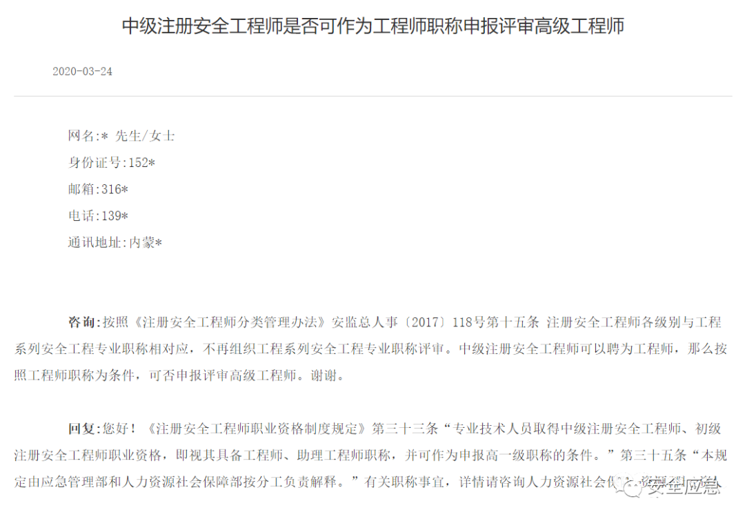 一、中級注冊安全工程師是否可作為工程師職稱申報高級工程師