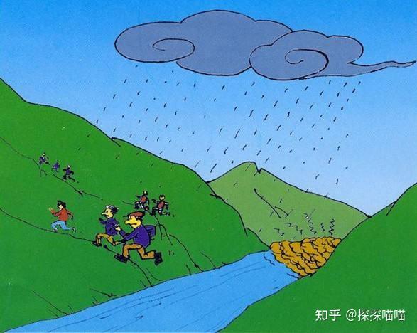 - 山區(qū)洪水:避開河道,防泥石流;別蹚水,可能被沖走;