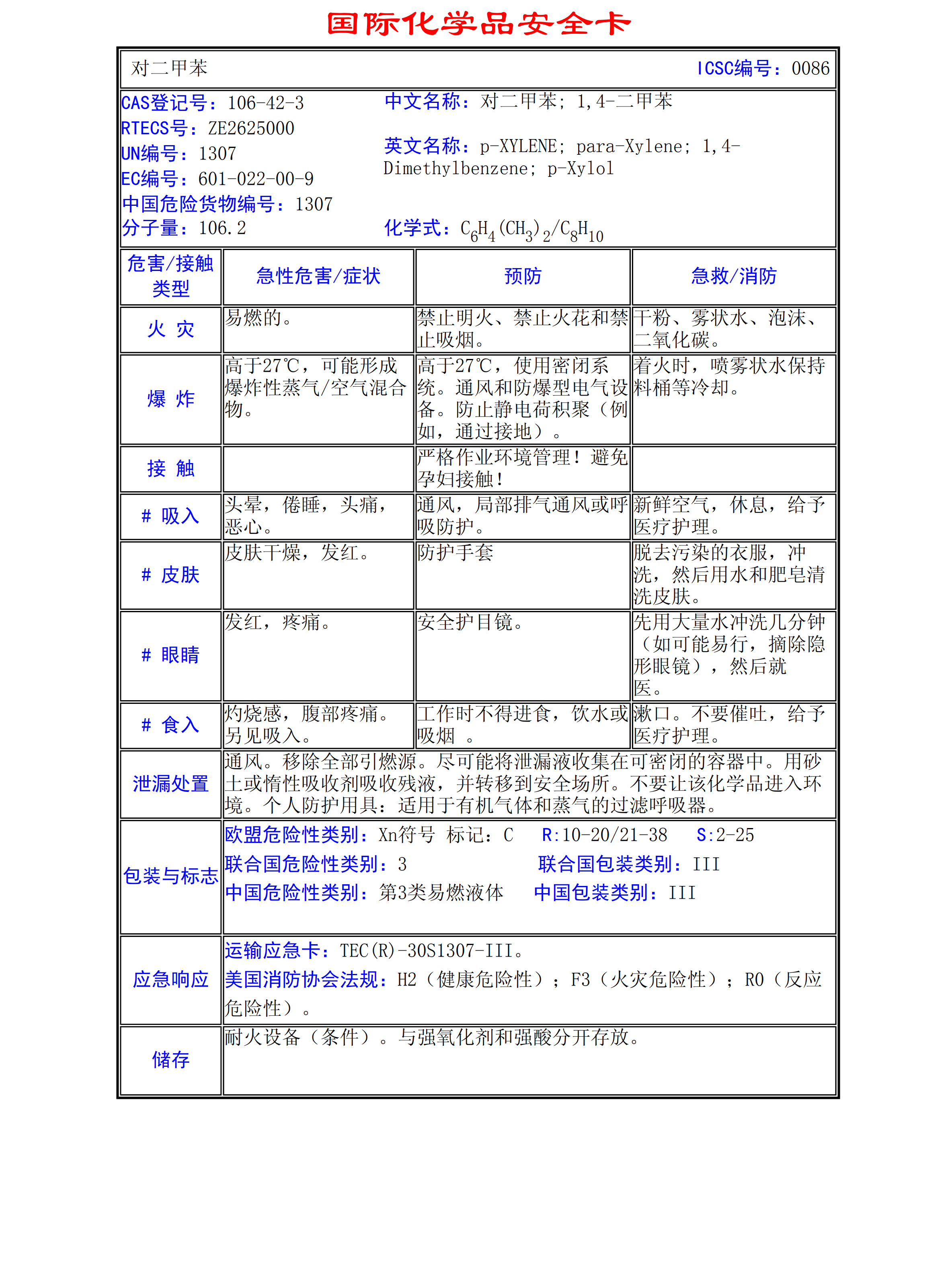 對二甲苯MSDS