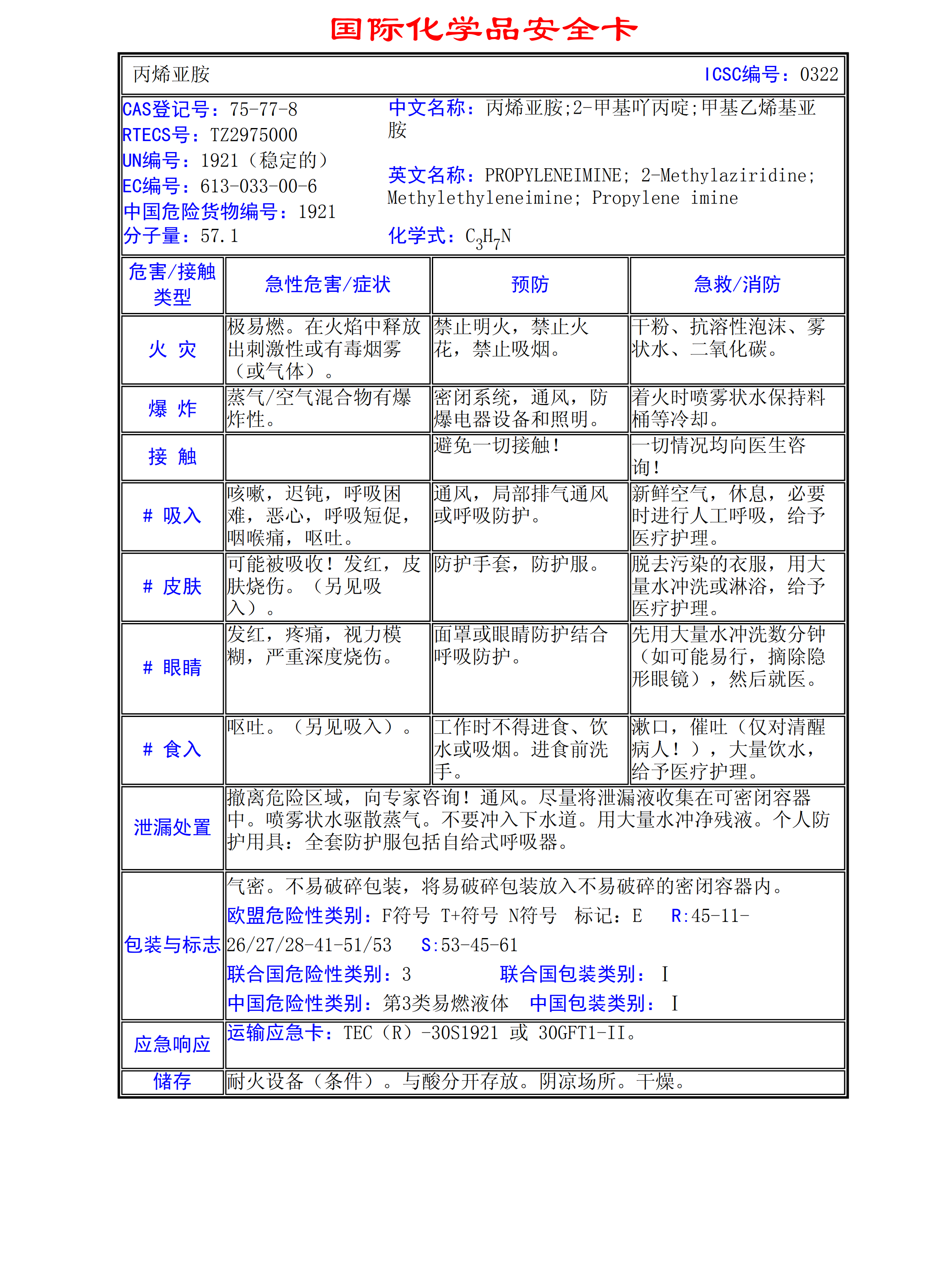 丙烯亞胺MSDS