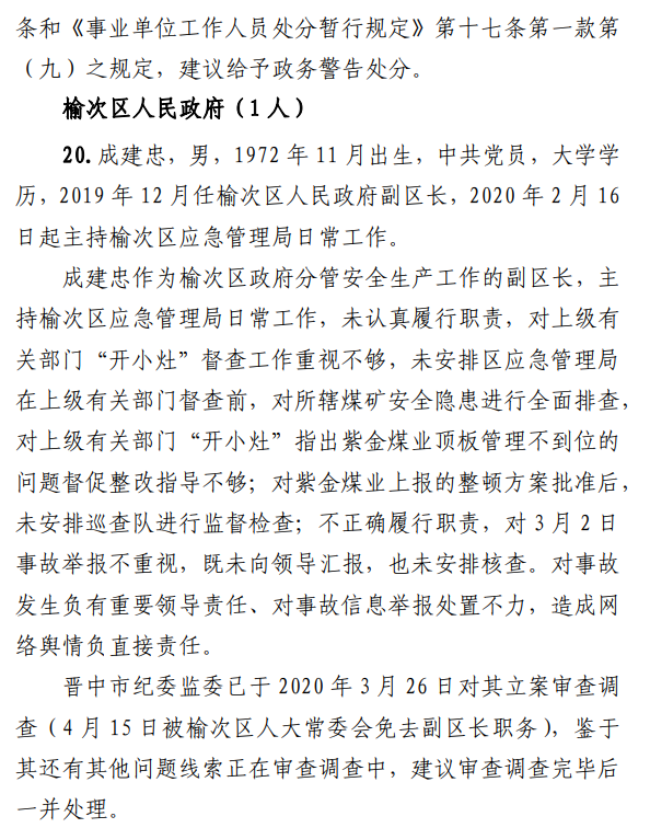 近日,山西煤礦安全監(jiān)察網(wǎng)發(fā)布該起事故調(diào)查報(bào)告顯示:事故發(fā)生后,礦方蓄意瞞報(bào)。后經(jīng)媒體披露,晉中市榆次區(qū)人民政府組織核查,于3月8日查實(shí)本起事故。