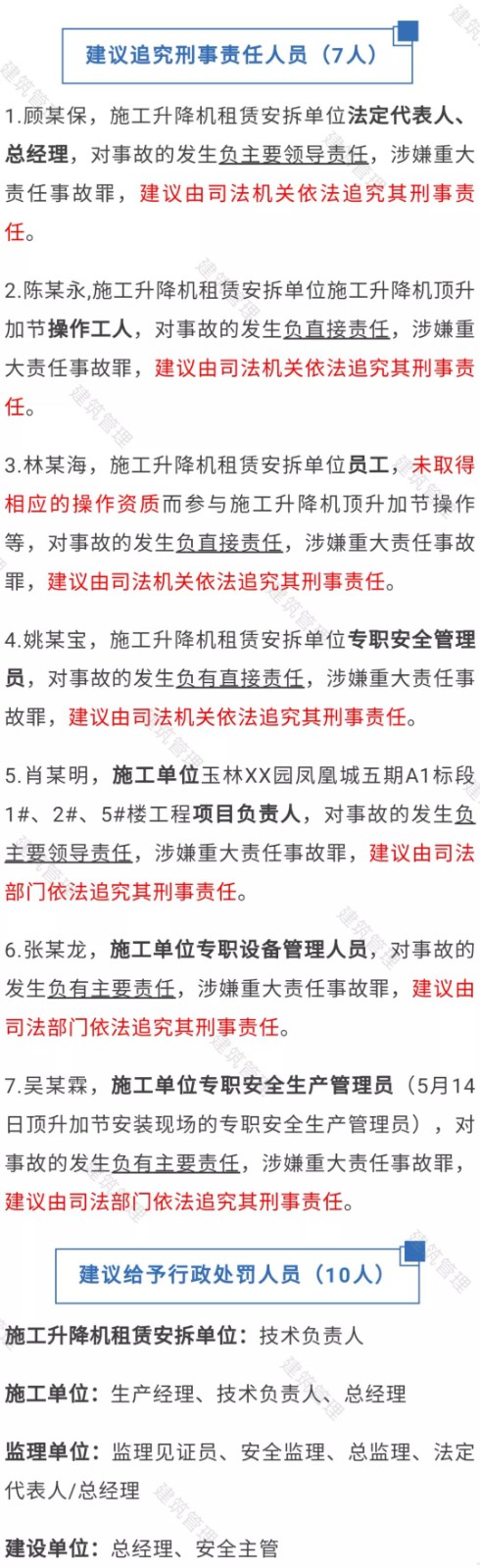 玉林升降機墜落致6人死亡!項目負責人安全員等7人被追刑責!10人被處罰!調查報告公布