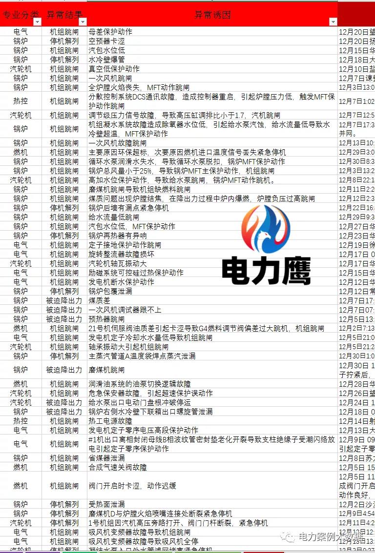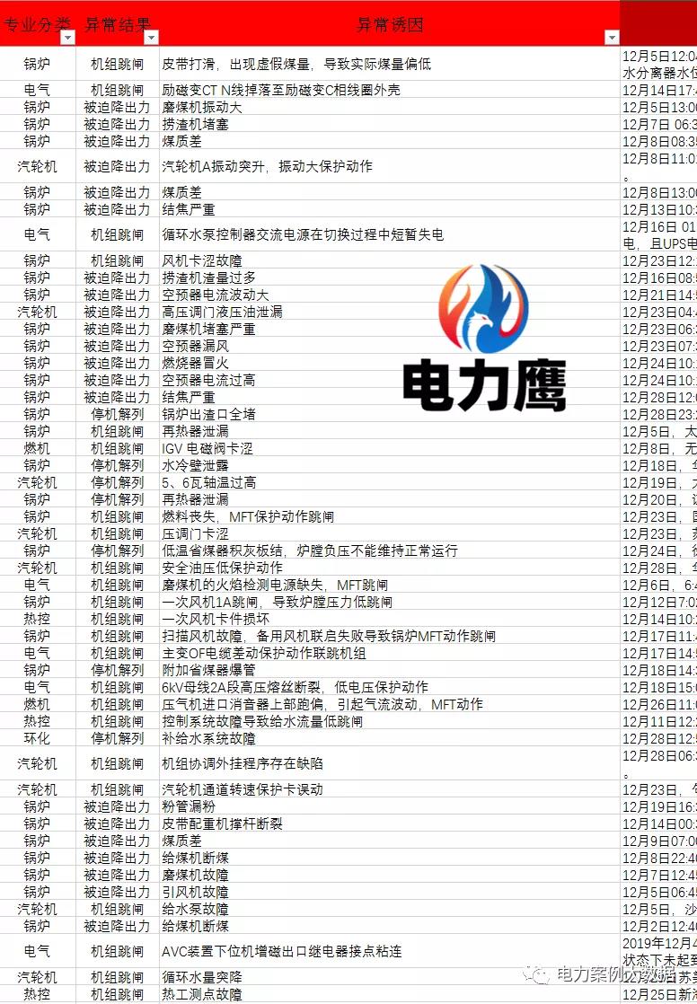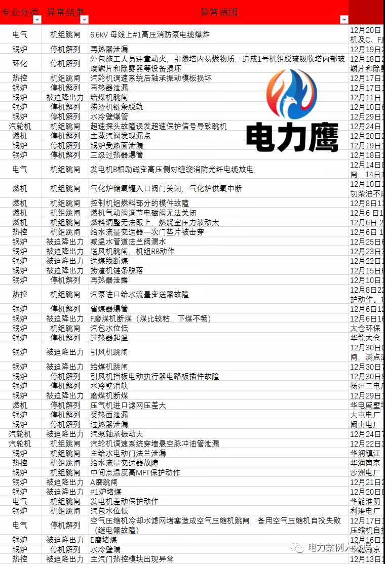 歷年12月電廠異常事故統(tǒng)計數(shù)據(jù)
