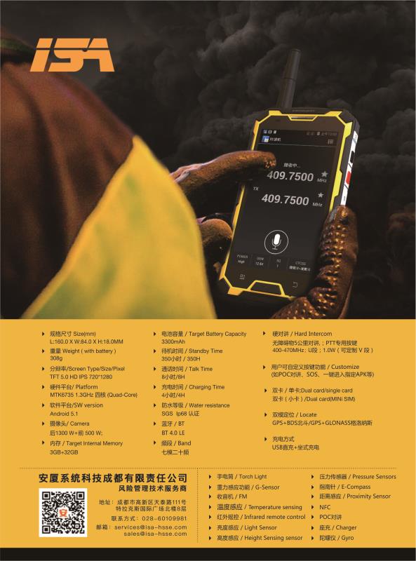 集成對講機、智能手機、高像素照相機、衛(wèi)星電話接口、1D&2D掃描頭,強光手電筒。